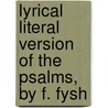 Reviews of Lyrical Literal Version Of The Psalms, By F. Fysh by Frederic Fysh & The Rev Frederic Fysh
