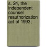 Reviews of S. 24, the Independent Counsel Reauthorization Act of 1993; by United States Congress Affairs, United States. Affairs & United Stat Affairs