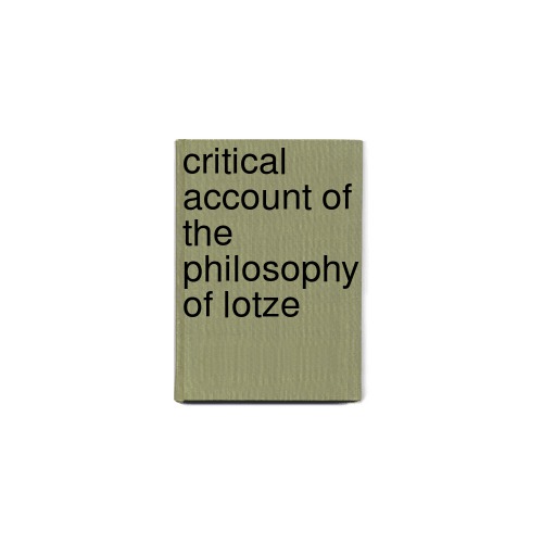 Critical Account of the Philosophy of Lotze by Sir Henry Jones