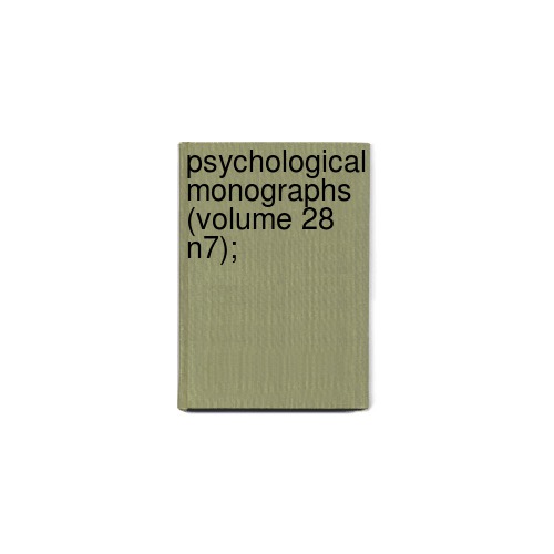 Psychological Monographs (Volume 28 N7); by American Psychological Association & American Association