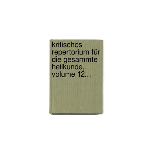 Kritisches Repertorium Für Die Gesammte Heilkunde, Volume 12... by
