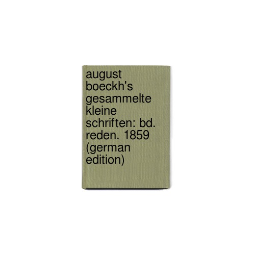 August Boeckh's Gesammelte Kleine Schriften: Bd. Reden. 1859 (German Edition) by Boeckh August