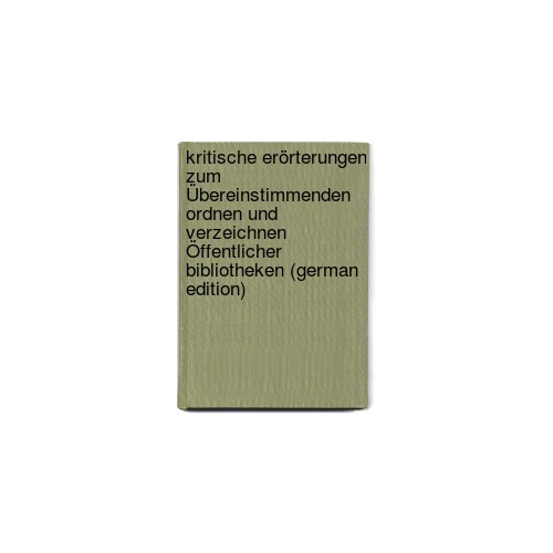Kritische Erörterungen Zum Übereinstimmenden Ordnen Und Verzeichnen Öffentlicher Bibliotheken (German Edition) by Christoph Friedrich Johann