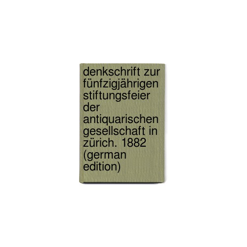 Denkschrift Zur Fünfzigjährigen Stiftungsfeier Der Antiquarischen Gesellschaft in Zürich. 1882 (German Edition) by Finsler Georg
