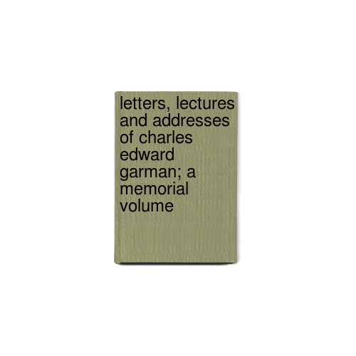 Letters, Lectures And Addresses Of Charles Edward Garman; A Memorial Volume by