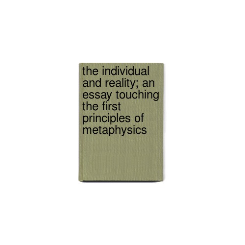 The Individual and Reality; an Essay Touching the First Principles of Metaphysics by
